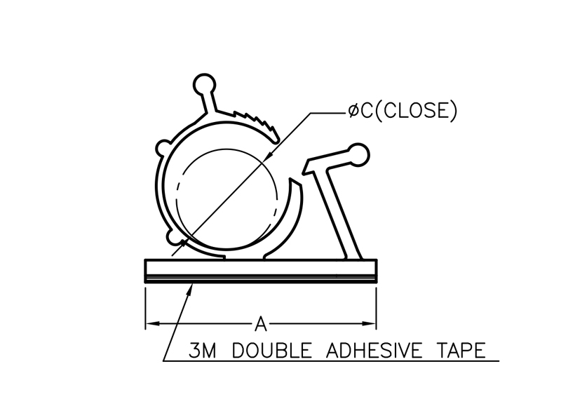 Adhesive Mount 39.8×19.8mm Round Adjustable Lock Wire Clip. Holding dia. Ø22.0-26.5mm. Material Nylon 66. Available in Natural or Black. UL Certified
