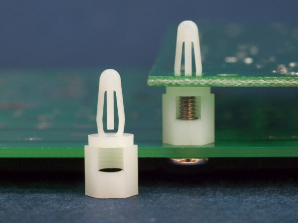 Female 6-32 UNC threaded snap lock PCB support. Bayonet top fits 4 mm panel hole. Spacer length is 12.7 mm.