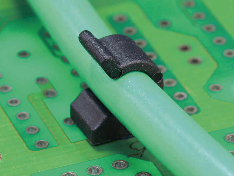 Snap Lock Cable Clip. Cable Holding dia.Ø 4.4mm. Mounting Hole 4×4.2mm. Panel Thickness 0.8-1.6mm. Nylon 66. Available in Natural or Black