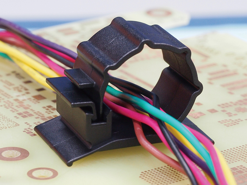 Snap Lock Round Lock Cable Clamp. Nylon 66. Max. Bundle Size Ø20.0mm. Mounting hole Ø6.35mm. Chassis Thickness 0.8-1.5mm. Available in Natural or Black. With anti-rotation pin