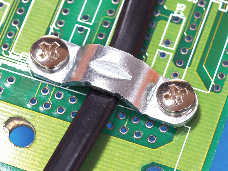 Strain Relief U-Clamp Screw Mount. Centerline pitch 16.0mm. Material Zinc Plated Steel