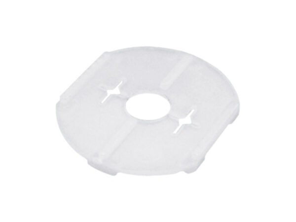 Electrolytic Capacitor Washer. Diameter Ø22.8mm. Height 2.7mm. Material Nylon 66. Color Natural/Black. These washers maintain a uniform, level height after board mounting ensuring optimal conditions for automatic soldering.