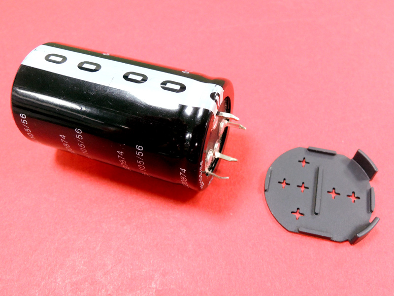 Electrolytic Capacitor Washer. Diameter Ø31.8mm. Height 0.95mm. Material Nylon 66. Color Natural/Black. These washers maintain a uniform, level height after board mounting ensuring optimal conditions for automatic soldering.
