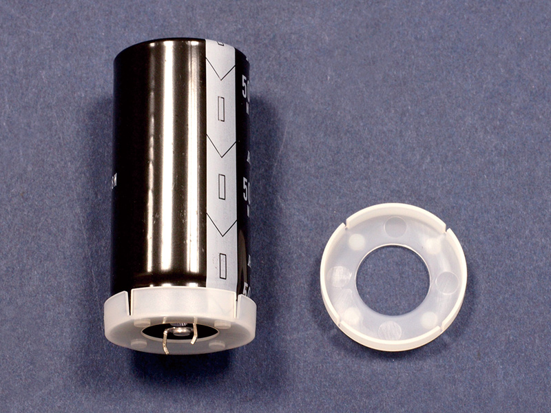 Capacitor Mount. For capacitors with a dia. Ø10.6mm. Material Nylon 66. Color Natural/Black