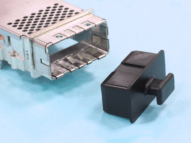 Small Form Pluggable (SFP) Optical Port Cover with Pull Tab. Material Polyethylene. Color Black.