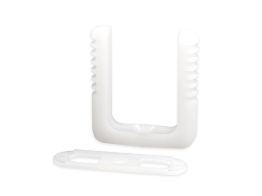 Screw Mount U-Clamp with Clamp Plate. Nylon 66. Inner Width 25.1mm. Screw hole dia. Ø5.1mm. Available in Natural or Black.
