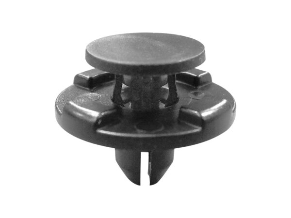 Push In Rivet. Black POM Material. Hole diameter Ø 7.0mm. Panel Thickness 3.2-3.8mm. The grommet expands as the pin is inserted, creating a secure fit. Ideal for applications that require a front-mount rivet.