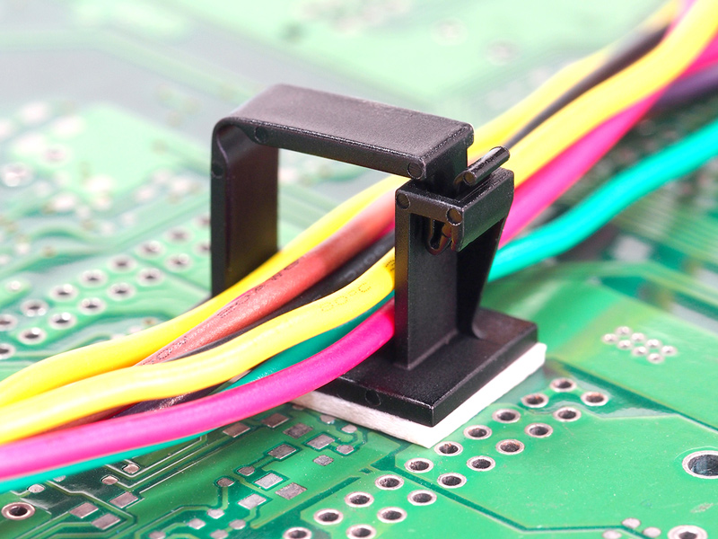 Adhesive Flat Cable Clamp (WxH) 19.0×13.2mm Hinge Locking.Internal Width 11.9mm. Nylon 66. Color Natural or Black