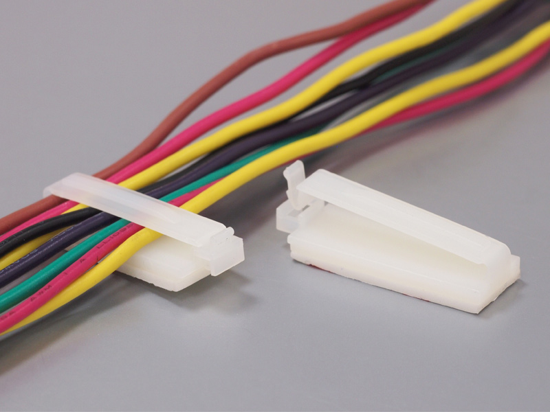 Adhesive Flat Cable Clamp (WxH) 28.6×2.66mm Hinge Locking.Internal Width 24.0mm. Nylon 66. Color Natural or Black