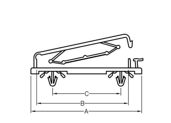 Dual Ø4mm hole size Snap-Lock Hinged Flat Cable Clamp (WxH) 55.0×9.0mm with Retention. Max. Cable Width 39.6mm. Snap-Lock Centerline Pitch 35mm. Chassis Thickness 0.8-1.8mm. Nylon 66. Available in Natural or Black. This product is suitable for a 35-way Flatcable