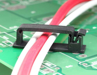 Dual Ø4.0mm hole size Snap-Lock Hinged Flat Cable Clamp (WxH) 28.0×15.2mm. Max. Cable Width 16.6mm. Snap-Lock Centerline Pitch 16.0mm. Chassis Thickness 1.0mm. Nylon 66. Available in Natural or Black.