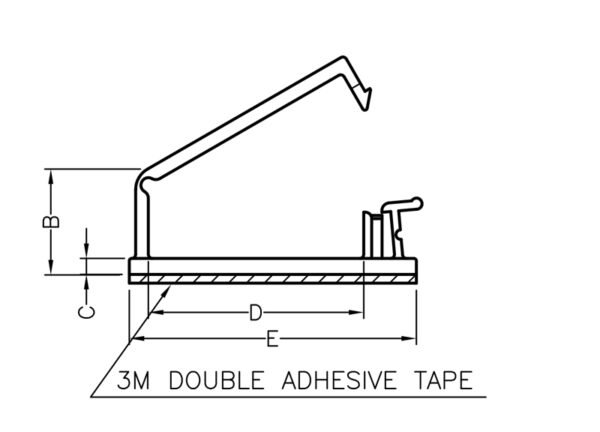 Adhesive Flat Cable Clamp (WxH) 35.8×8.3mm Hinge Locking.Internal Width 26.8mm. Nylon 66. Color Natural or Black