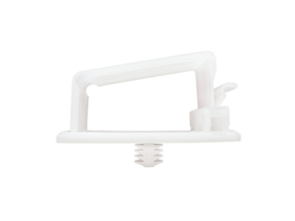 Blind Hole Mount Lock Hinged Flat Cable Lock Clamp (WxH) 45.4×15.2mm. Cable Width 31.8mm. Mounting Hole dia 6.5-7.0mm. Max. Chassis Thickness 0.8-3.0mm. Nylon 66. Available in Natural or Black.
