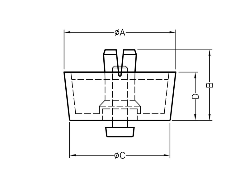 Snap-In Feet PE Ø20.8×6.4mm with PP rivet pin. Mounting hole Ø8mm. Flame Class UL94 HB. Chassis Thickness 1.0~2.5mm. Also available in TPR or TPV