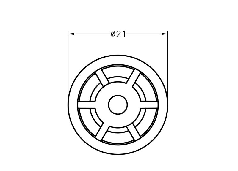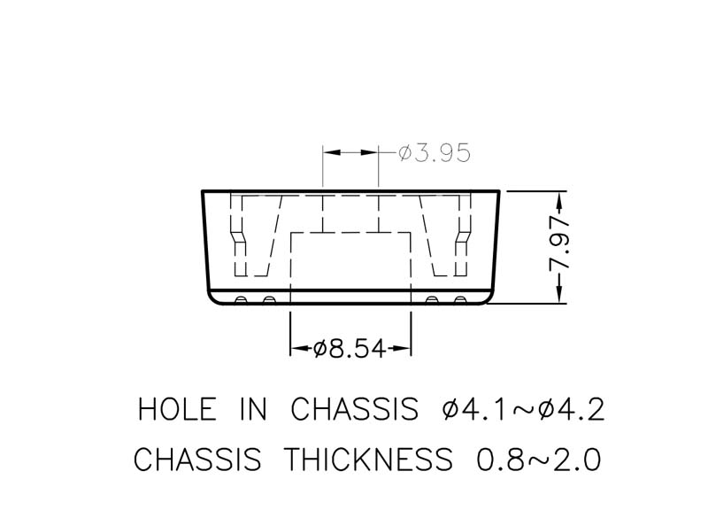 Snap-In Feet TPR Ø21.0×7.97mm with PA66 Rivet. Mounting hole Ø4.1~4.2mm. Chassis Thickness 0.8~2.0mm