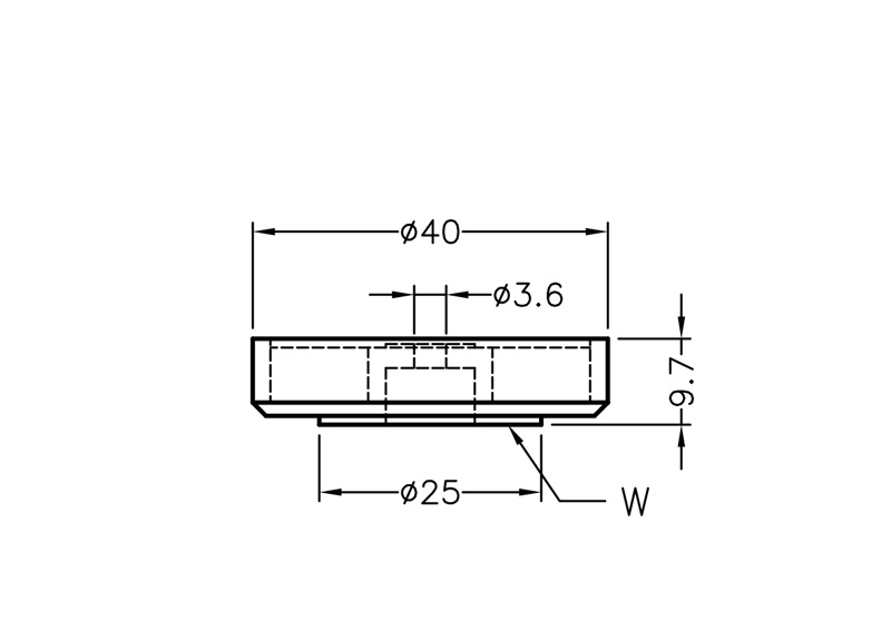 ABS Foot Black Ø40.0×9.7mm with EVA foam pad for to prevent sliding. Screwable by central Ø3.6mm hole.