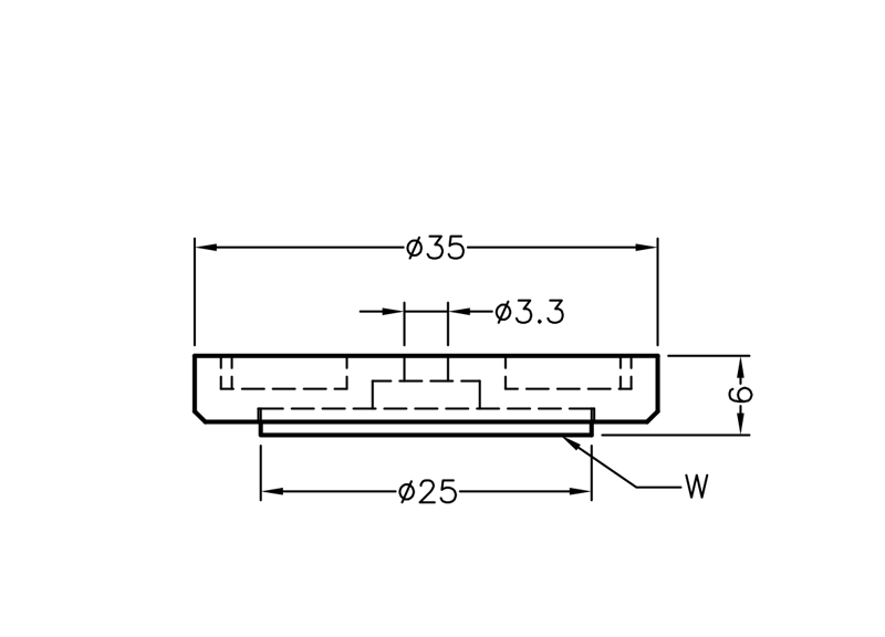 ABS Foot Black Ø35.0×6.0mm with Rubber pad for to prevent sliding. Flame Class UL94 HB. Screwable by central Ø3.3mm hole.
