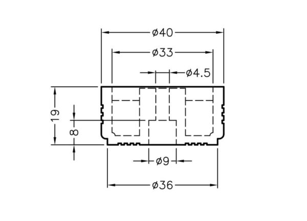TPE Foot Black Ø40.0×19.0mm. Screwable by central Ø4.5mm hole.
