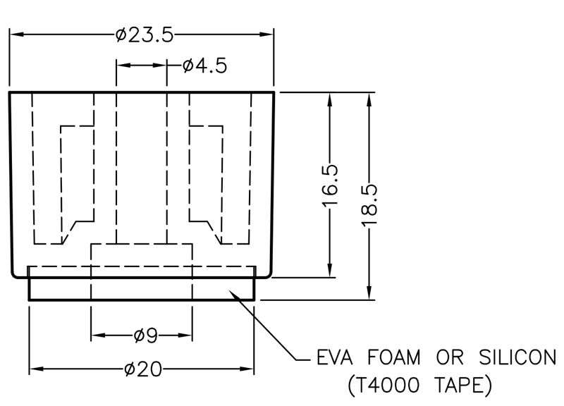 ABS Screw on Feet Ø23.5×18.5mm with EVA or Silicon foam pad to prevent sliding. Screwable by central Ø4.5mm hole.