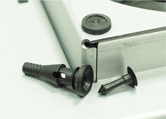 2 piece TPE Fan Snap Rivet with Nylon 66 94V-2 Plunger. Mounting Hole Ø 4.5mm. Color Black.