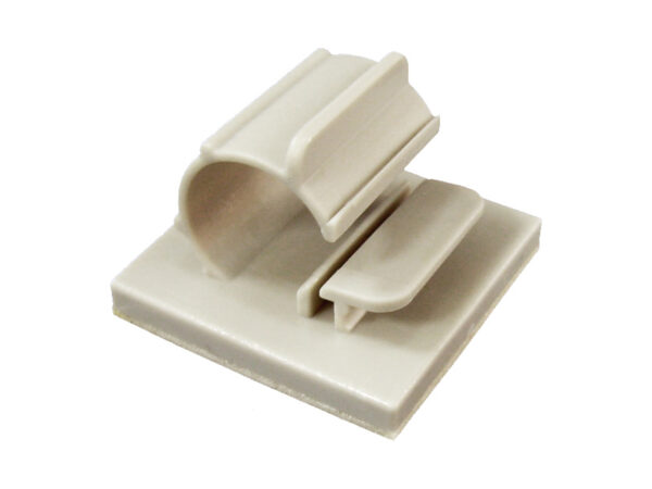 Adhesive Mount 30.73×25.4mm Round Lock Wire Clip. Holding dia. Ø12.7mm. Material Nylon 66. Available in Natural or Black
