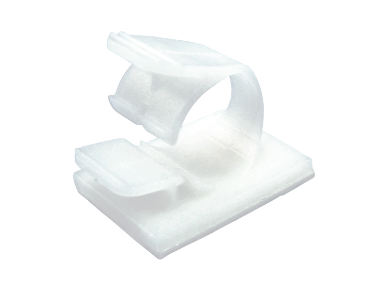 Adhesive Mount 21.6x19mm Round Lock Wire Clip. Holding dia. Ø9mm. Material Nylon 66. Available in Natural or Black
