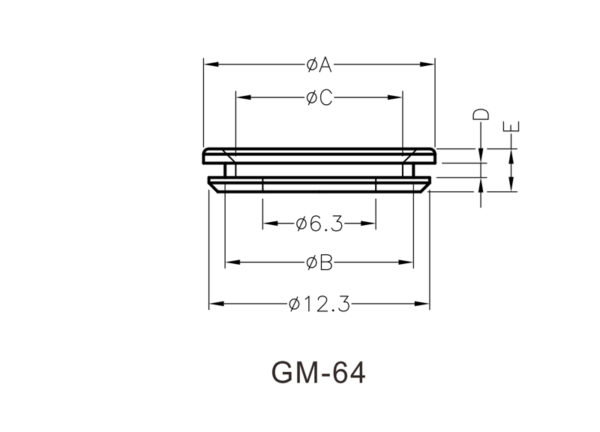 Rubber/ Silicone Open Grommet. Panel Hole dia. Ø10.5mm. Panel Thickness of 0.8mm Suitable for cable size Ø6.3mm. These hole plugs are flared or collared on each side to keep them in place.