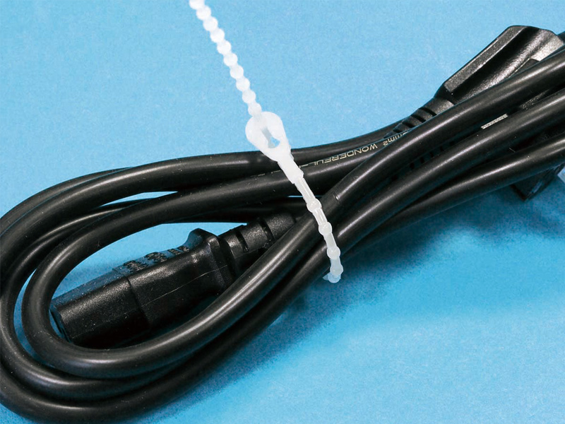 Polypropylene Beaded Tie In-Line Locking. For organizing cables or hoses, offering flexible, adjustable fastening. Length 457mm. Color Natural