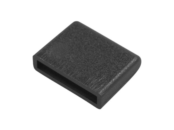 End cap for lever mechanism release handle. Material Polycarbonate (PC) + ABS. For Latchsize (WxH) 10.7×1.7mm. Color Black