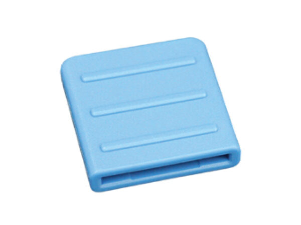 End cap for lever mechanism release handle. Material Thermoplastic Polycarbonate (PC)+ ABS. For Latchsize (WxH) 15.2×1.2mm. Color Black or Blue