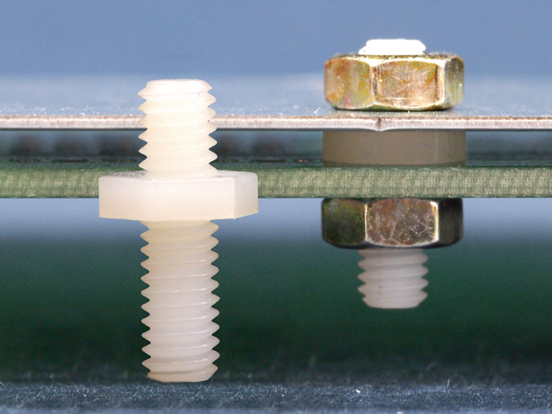 Metric tapped hex Nylon 66 spacer, male/male with a M4 metric external 4.5mm thread on one side and 8mm on the opposite side. Standoff height is 2 mm