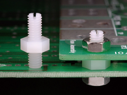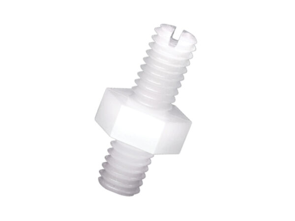 Metric tapped hex Nylon 66 spacer, male/male with a M3 metric external 45.0mm thread on one side and 7.0mm on the opposite side. Standoff height is 3.0mm