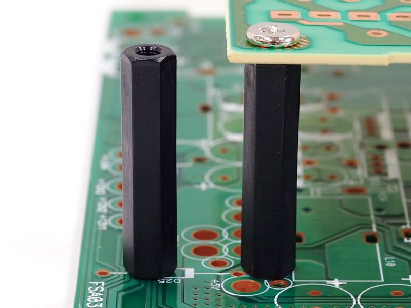 Metric tapped hex Nylon 66 spacer, female/female, M3 threads on both ends with 9 mm thread depth per end. Standoff height is 30 mm.