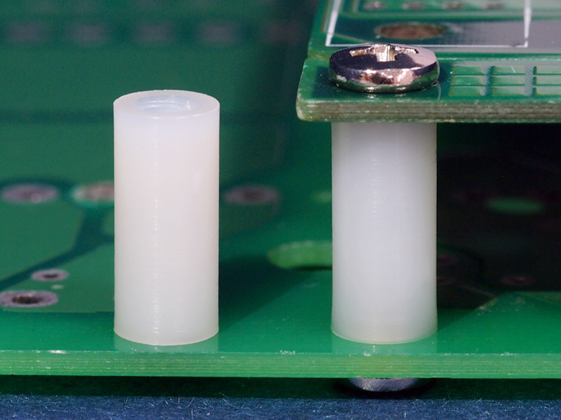 Tapped hex Nylon 66 spacer, female/female, UNC-6-32 threads on both ends with 6 mm thread depth per end. Standoff height is 14.29 mm.