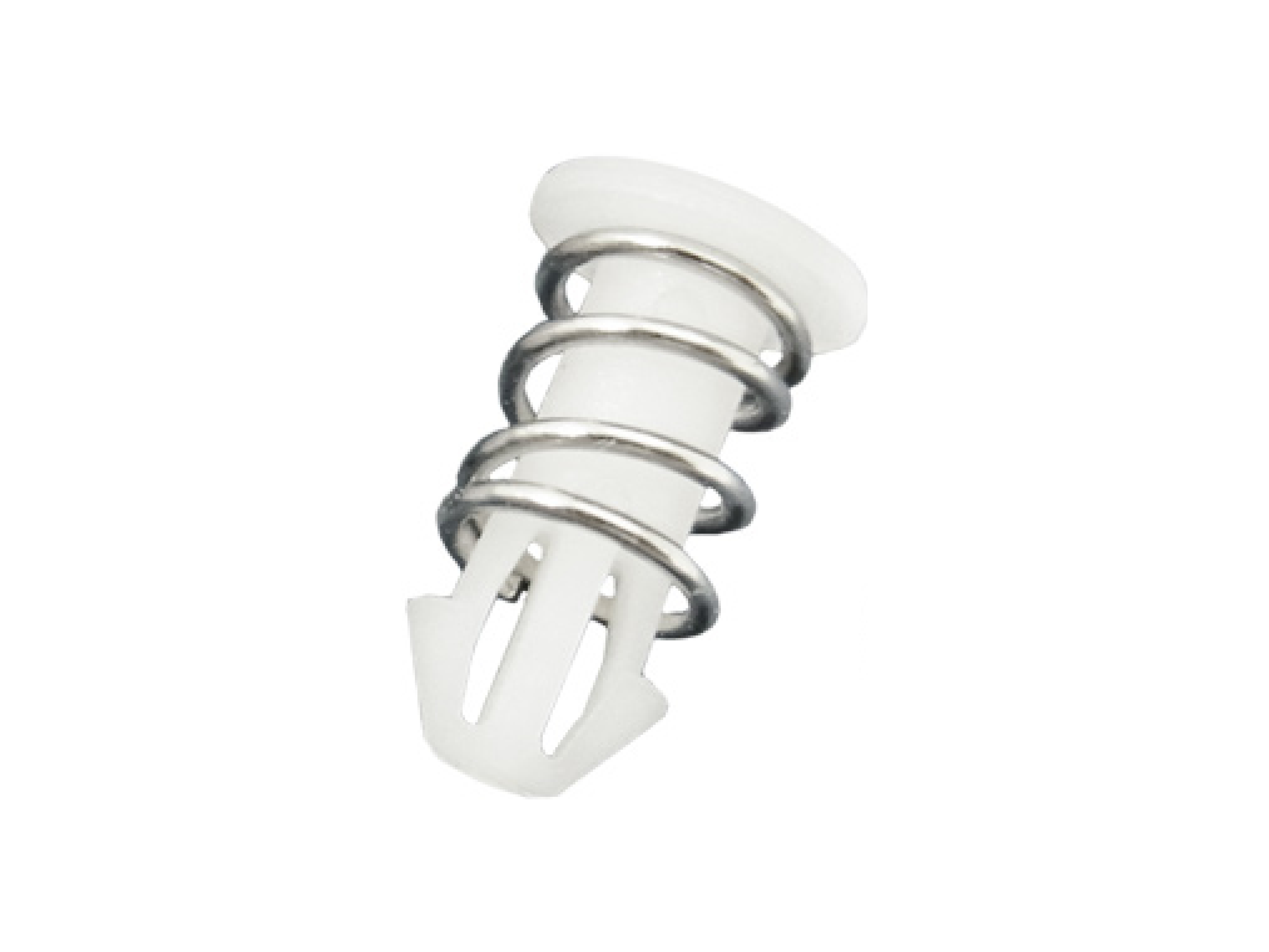 Push Heatsink Clip with spring for PCB Ø 2.2mm. Length 7.7mm. Material Nylon 66. Color Natural or Black. Please contact us for tailored spring force options.