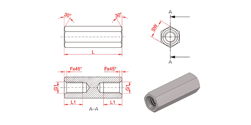 | Part no. | Material | Color | A L | B SW | C L1 | D G1 | Package |