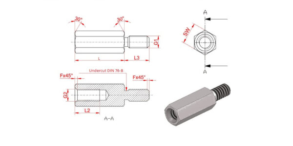 Male/Female Hexagonal Brass Standoff M6 Thread with undercut