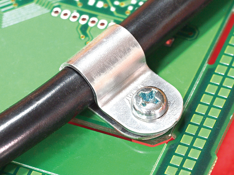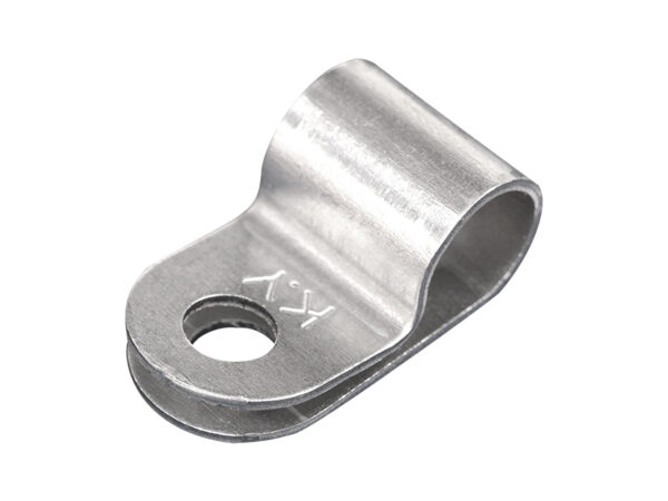 Aluminum Grounding P-Clip. Cable Holding dia. Ø8.0mm. Clip Width 12.7mm. These clips feature a unique P-shaped design with a Ø5.2mm Screw Mount hole, allowing for easy installation and secure attachment.