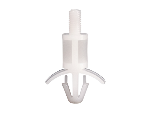 Male threaded snap lock. M3 thread top and arrowhead with tension wing for 4.8 mm chassis hole. Standoff height is 3 mm.