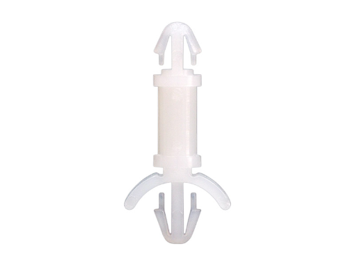 Dual locking support post. Arrowhead top for 3 mm panel hole and arrowhead with tension wing for 3 mm chassis hole. Standoff height is 11.1 mm.