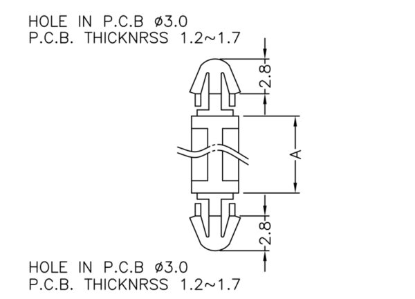 Arrowhead support post for a panel top and bottom hole of 3 mm. Spacer length is 21 mm.