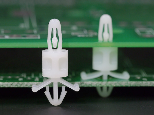 Dual locking support post. Bayonet snap fit for top hole of 3.2 mm and arrowhead with tension wing for 3~3.2 mm chassis hole. Standoff height is 17 mm.