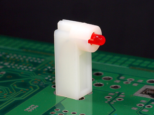 LED Support PA66 Right Angle PCB Mount for for 3 lead LED size 3mm(T-1) with 2 Centerpins. Centerline 17.5mm. The 2 Centerpins avoids the holder from turning and relieves the stress on the leads of the LED . LED’s shown for Demo not included in holder