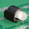 LED Support PA66 Right Angle PCB Mount for 3 lead LED size 5mm(T-1¾). Centerline 3.8mm. Gives consistent height and support to LED. LED’s shown for Demo not included in holder