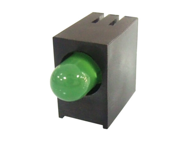 LED Holder PA66 Right Angle PCB Mount for LED size 5mm(T-1¾). Centerline 7.5mm. Gives consistent height and support to LED. LED’s shown for Demo not included in holder