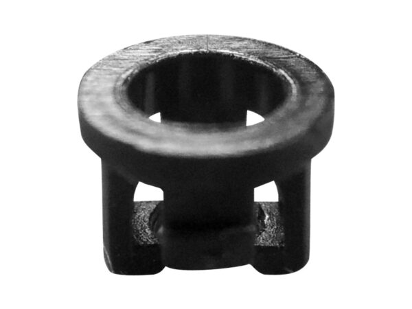 Snap In LED holder for LED size 3mm (T1). Chassis hole size Ø4.3mm. Chassis Thickness 0.8mm. Length protrusion 2.2mm. Material Nylon 66. Color Black