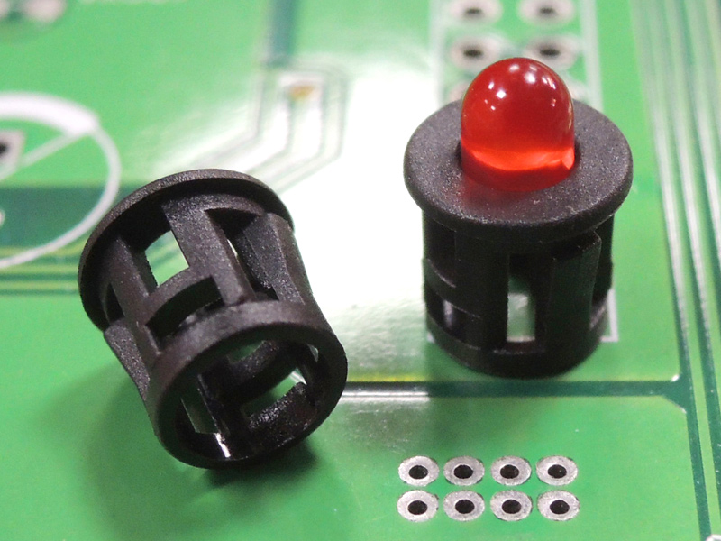 LED Snap-In Panel Mount housing for 3mm Bi-Lead or Tri-Lead LED. Mounting Hole size Ø5.2mm. Panel Thickness 0.8mm. Material Nylon 66. Color Black