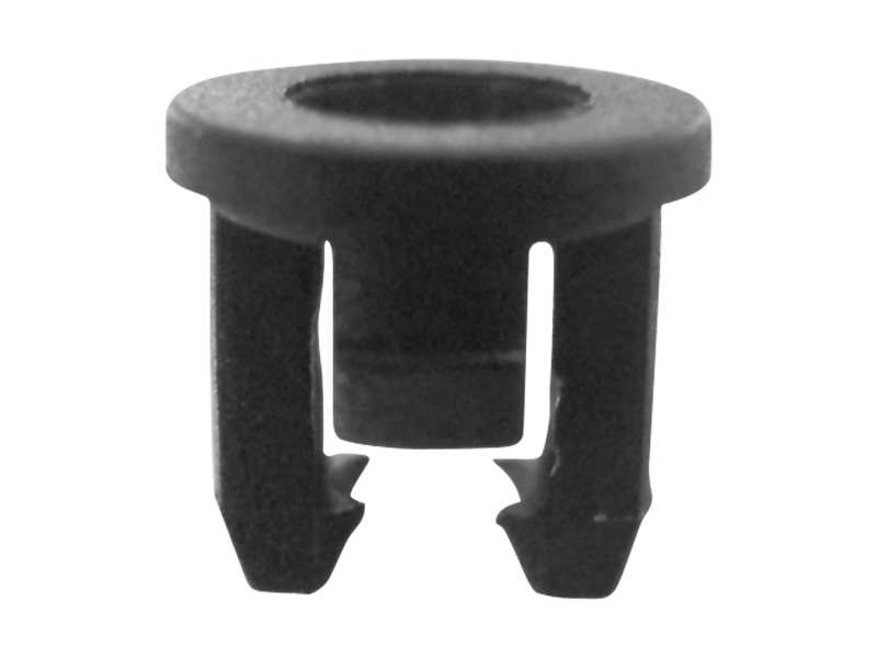 Snap In LED holder for LED size 3mm (T1). Chassis hole size Ø5.0mm. Chassis Thickness 1.0-1.1mm. Length protrusion 4mm. Material Nylon 66. Color Black