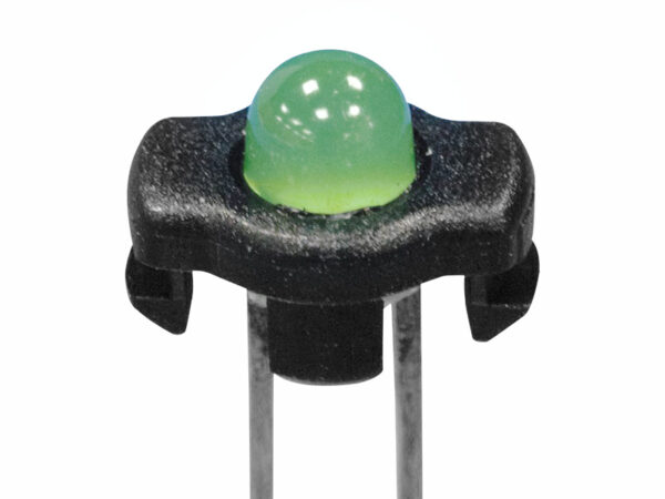 LED Snap-Fit Front Panel Mount housing for 3mm (T-1) LED. Hole size Ø5.8-6.0mm. Panel Thickness 0.8mm. Material Nylon 66. Color Black