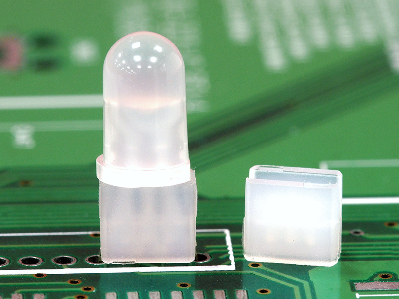 4-Lead Squared LED Spacer Mount. The design keeps the 4 leads seperated from each other. Length 5.0mm. Nylon 66. Available in Natural and Black